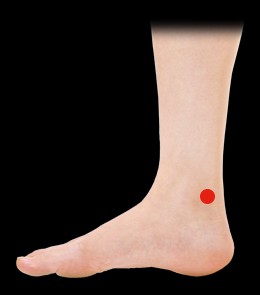 復溜(ふくりゅう)(ツボがわからなかったら太渓(たいけい))