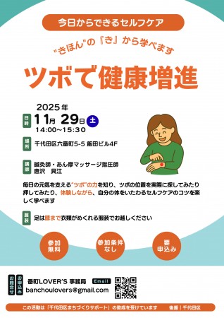 今月11月28日は後援千代田区で健康増進のためのツボイベントを開催します