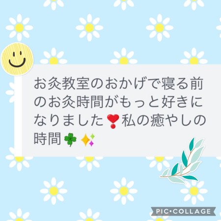 「お灸教室のおかげで寝る前のお灸時間が、もっと好きになりました。私の癒しの時間☆」
