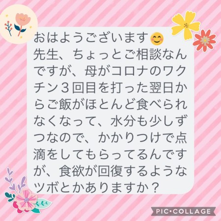 Q2・コロナワクチンの副反応で母が食欲不振で点滴を受けています。