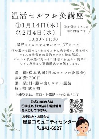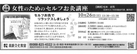 中四国のカルチャーセンター、香川県内のコミュニティセンターでセルフお灸講座を開催しています。