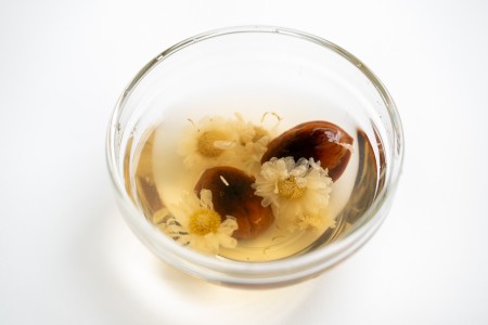 くるみの殻はそのままではなく、菊花の煎じ液に浸してあるので、菊花のエキスの蒸気が目をリラックスさせてくれます。