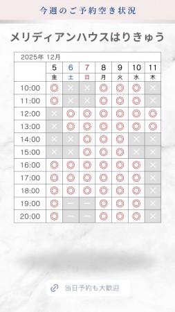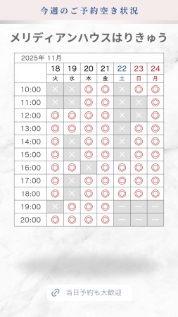 年齢性別不問土日祝日営業女性専用ではないので、どんなタイプの方でも誰でも気軽に受けていただけます。