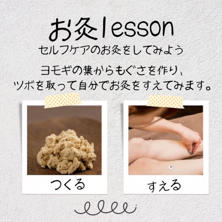 自宅でお灸をすえられるように、その人それぞれに必要なツボをご案内し、ツボの取り方、お灸のすえ方をお伝え実践していただきます。そしてお試し用のお灸も数種類お渡しします。