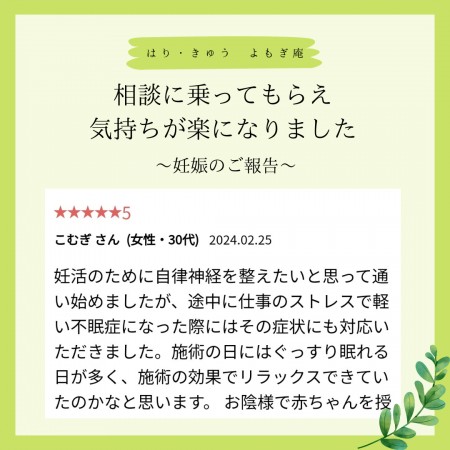 よもぎ庵ではおひとりおひとりの気持ちに寄り添いながら、妊娠に向けて身体づくりのサポートをしています。