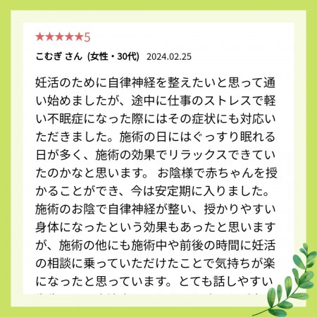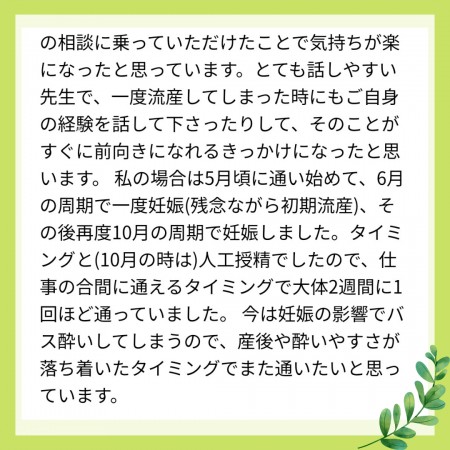 めでたく妊娠された方からのご感想は、今現在悩んでいらっしゃる方の参考になります。