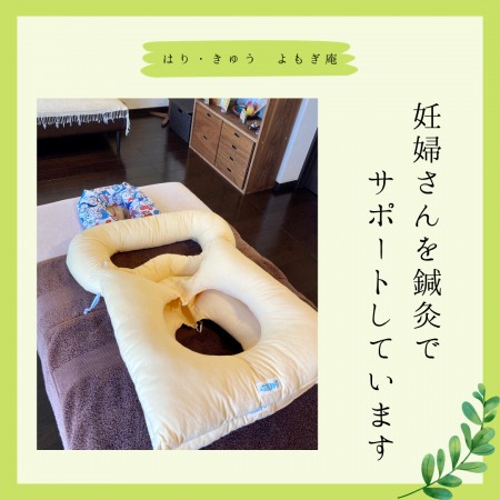 お腹が大きくなってきたら負担の無いように専用のクッションを使用したり、横向きで施術をしたりしますのでご安心くださいね。