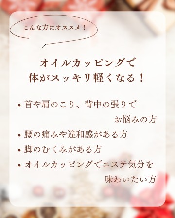 *【スペシャル美容鍼】でオイルカッピングご希望の場合は、ご予約の際にお申し付けください。