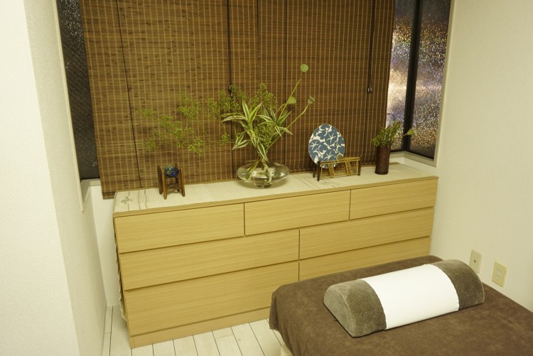 完全個室のプライベートサロン美容鍼灸サロンSAKURAは、完全個室のプライベートサロンですので、他のお客様の目を気にすることなくお過ごし頂けます。四季折々の花が飾られた、和風のしつらえのお部屋で、心身ともにリラックスして頂けます。