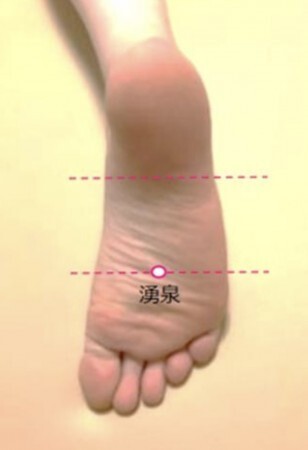 ツボの場所:足のつま先〜かかとまででつま先から約1/3のところにできる凹みのところ。