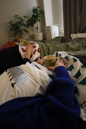 東洋医学や養生のお話、せんねん灸体験をした後にごろんと寝っ転がってお腹に塩灸を行いました。