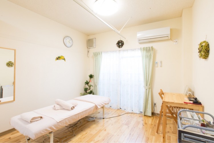 ベッド一台の、プライベートサロンです。リラックスしていただいけます。駅徒歩3分。無料駐車場完備。
