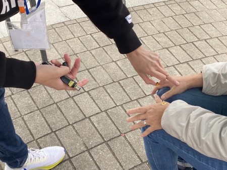 当日はマラソン大会のゴール付近でランナーさんや買い物に来ていた方など多くの方にせんねん灸を使ったお灸を体験してもらいました。
