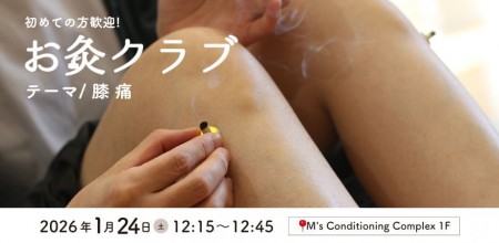 お灸を使ったセルフケアが出来るよう、「正しいセルフ灸の使い方」や「症状に応じたツボ」を学び、実際にお灸を行います。手足のツボを用いるので男女問わず参加可能です。今回は「膝痛」がテーマです。